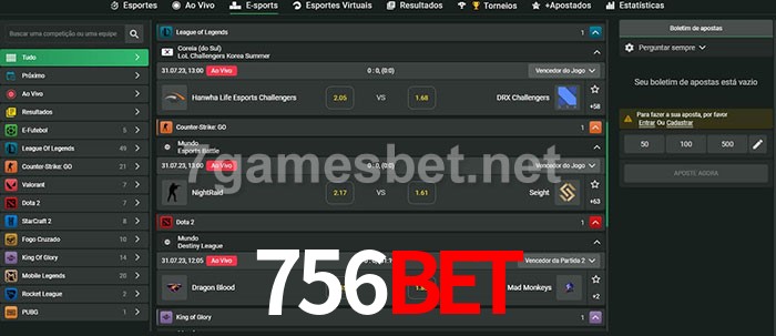O 756Bet oferece uma grande seleção de opções de apostas em e-sports com probabilidades competitivas